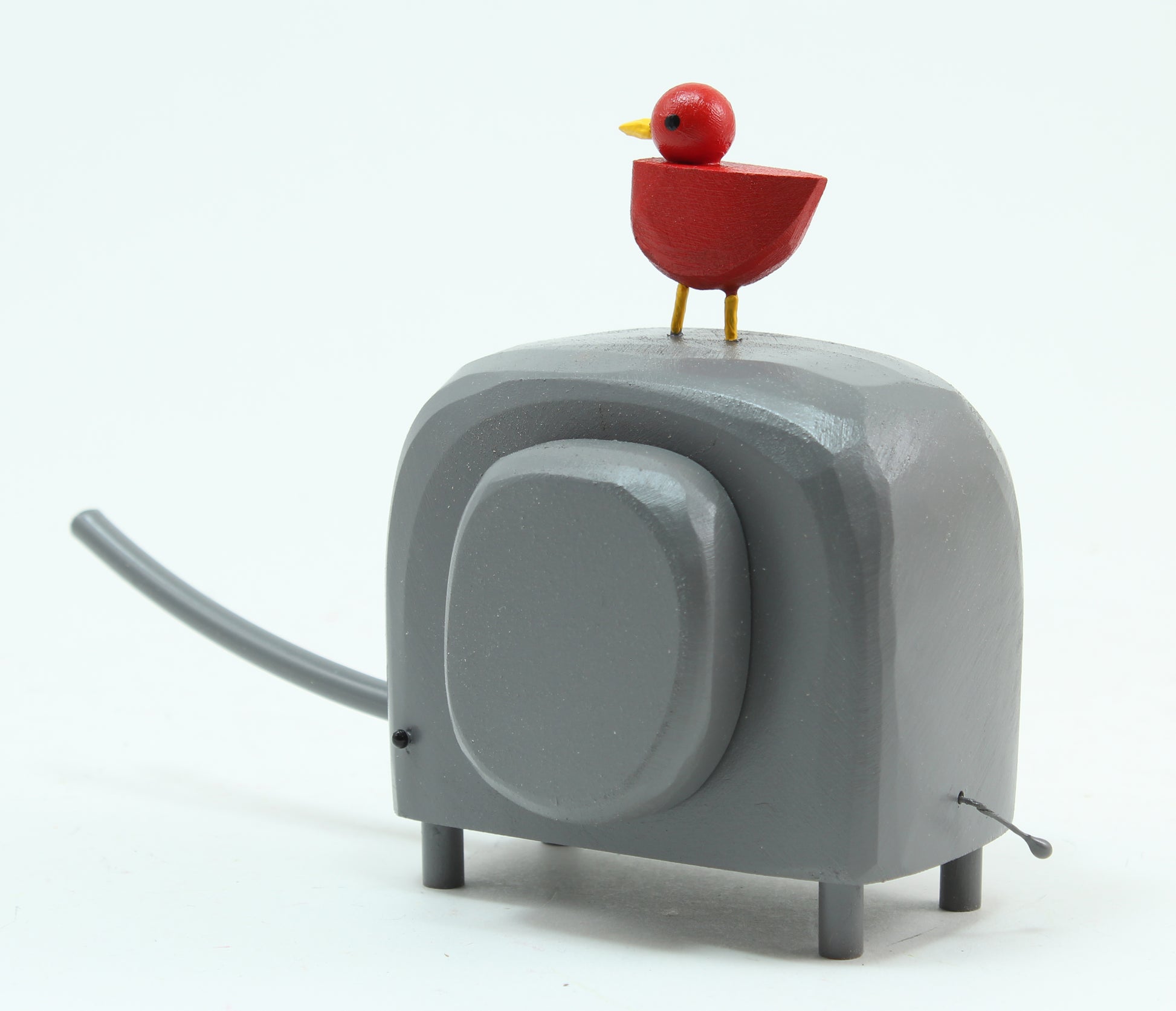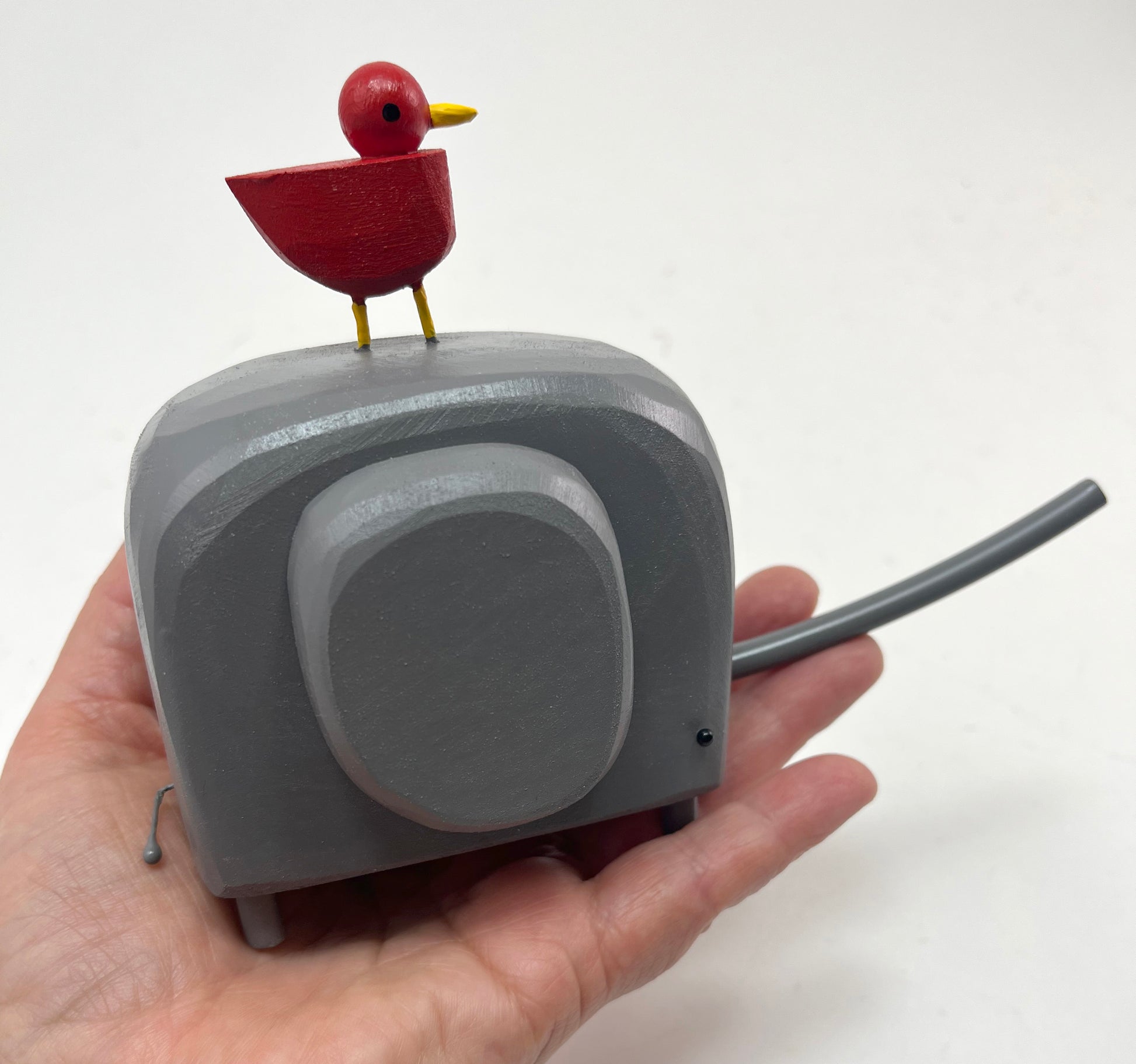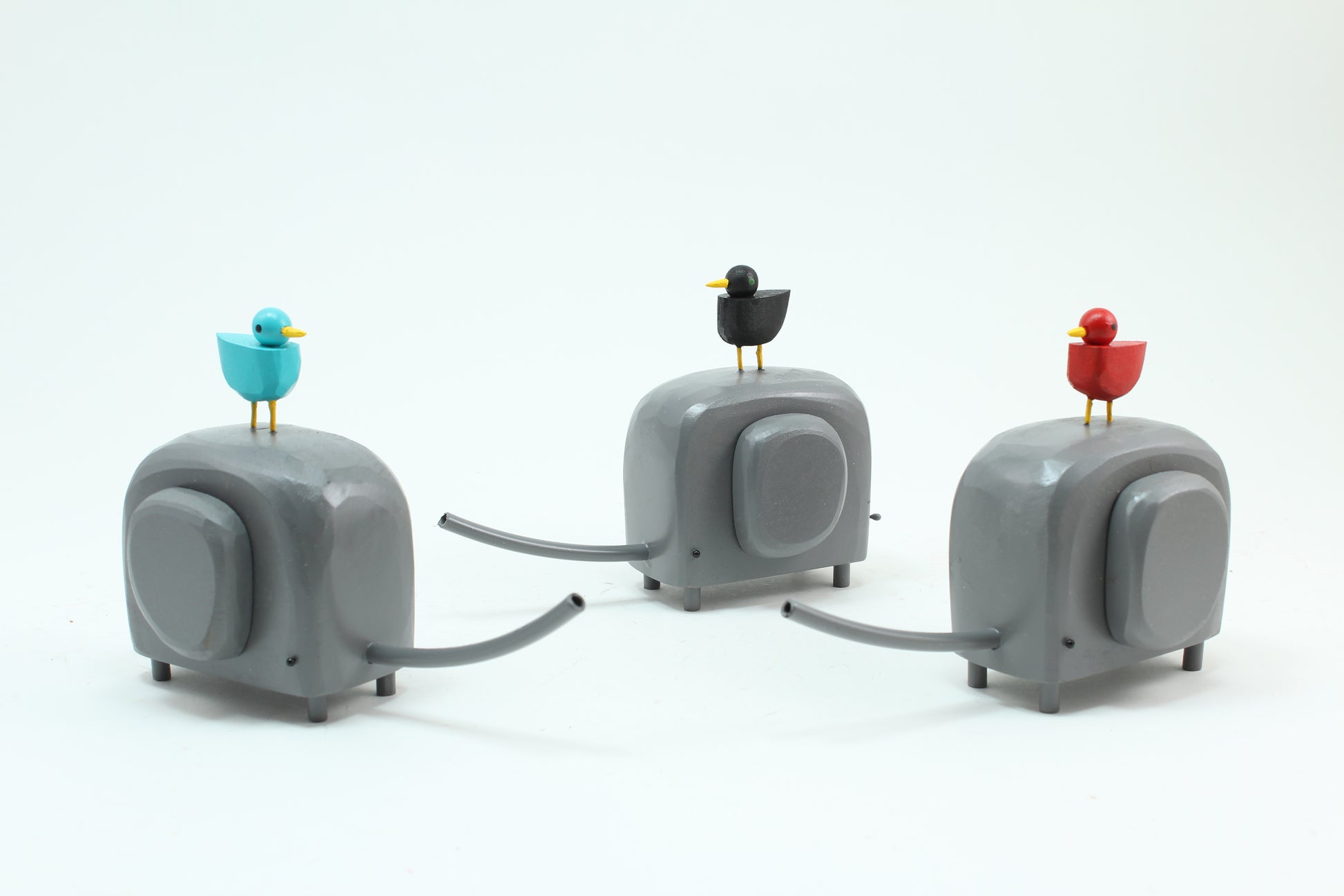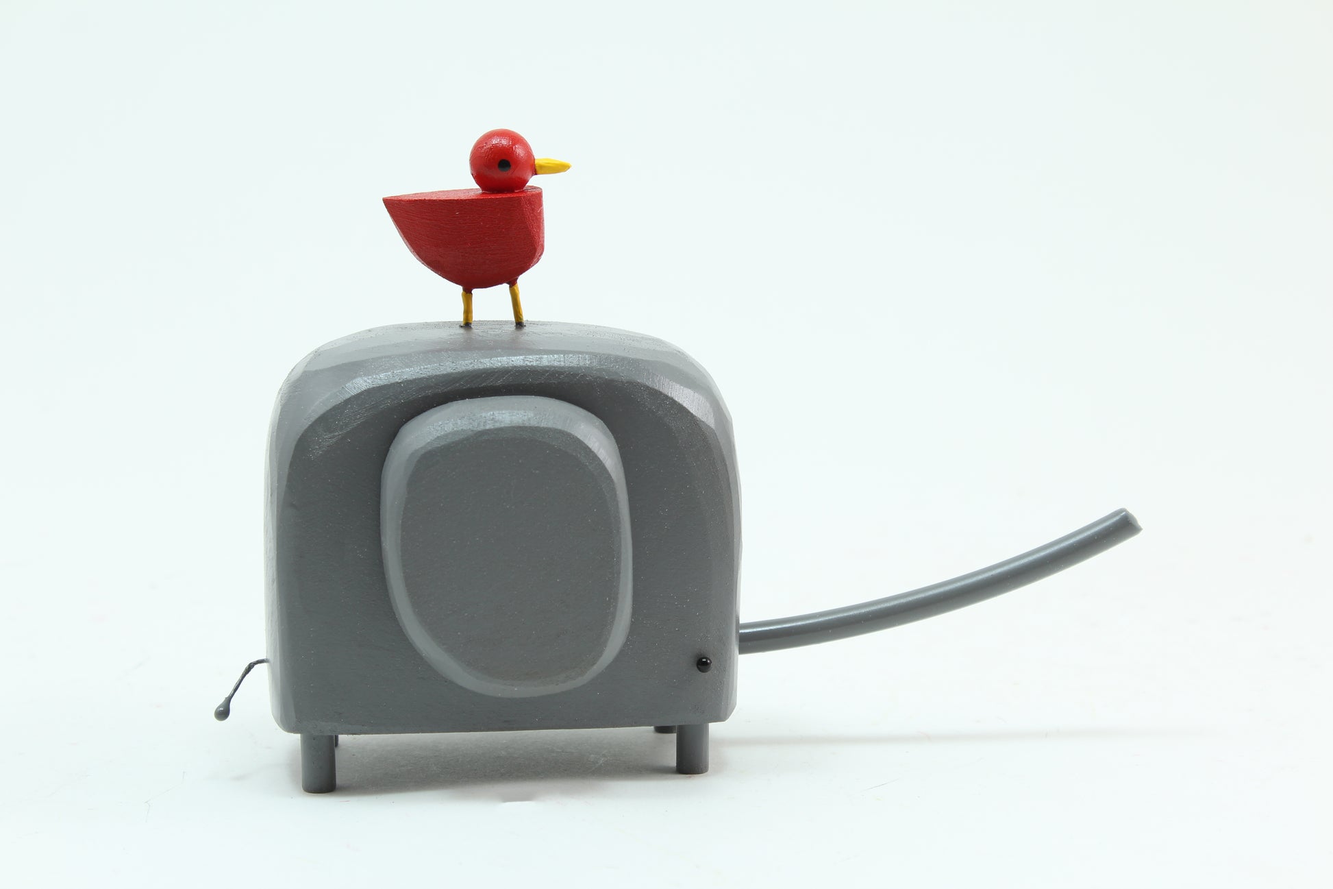 Tell someone you're thinking about them with a miniature elephant figure made from reclaimed wood. Choose from one of three bird colors. Measures around 4" tall, 7" deep and 3 inches wide.