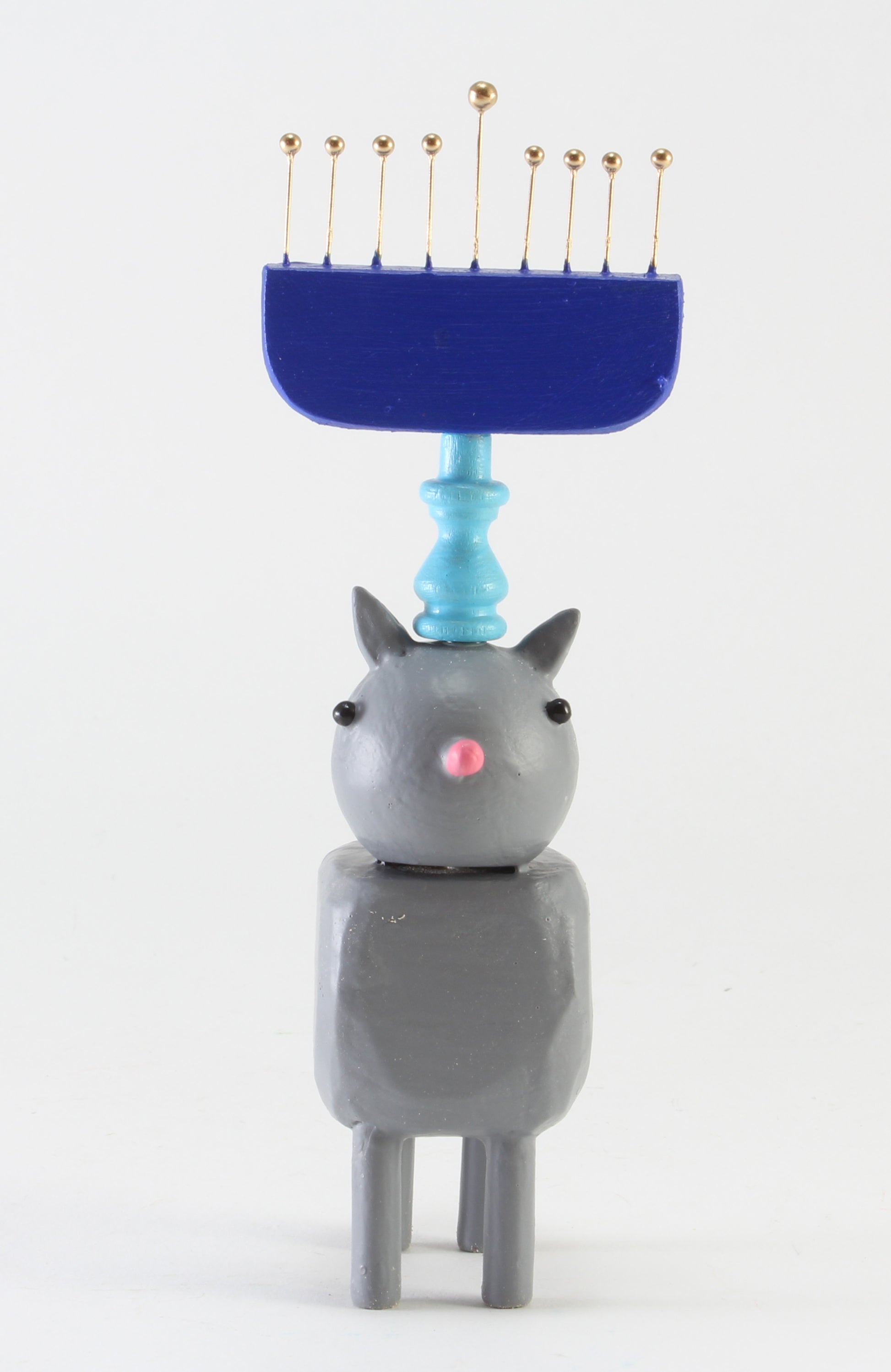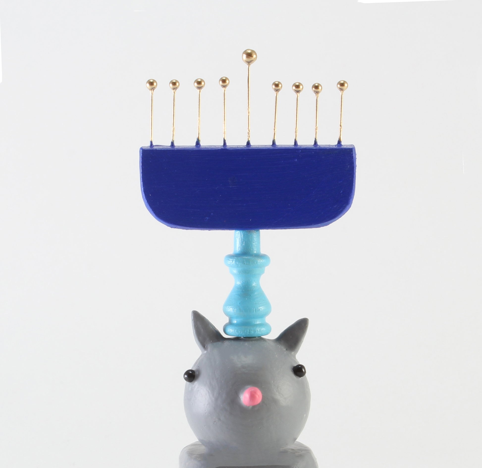 This adorable gray cat balances a menorah on its head to bring a little humor into hanukkah. As seen in the video, this piece is sized to coordinate with my other holiday figures or trees to create your own unique centerpiece or tablescape!