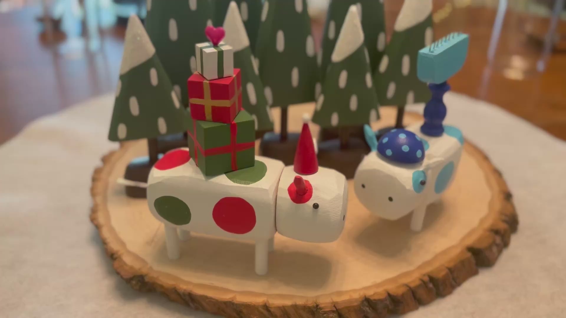 Add a little humor to your holiday decorations with a Christmas or Hanukkah-themed cow figure! Sold individually, these pieces are sized to coordinate with my other holiday figures or trees to create your own unique centerpiece or tablescape!
