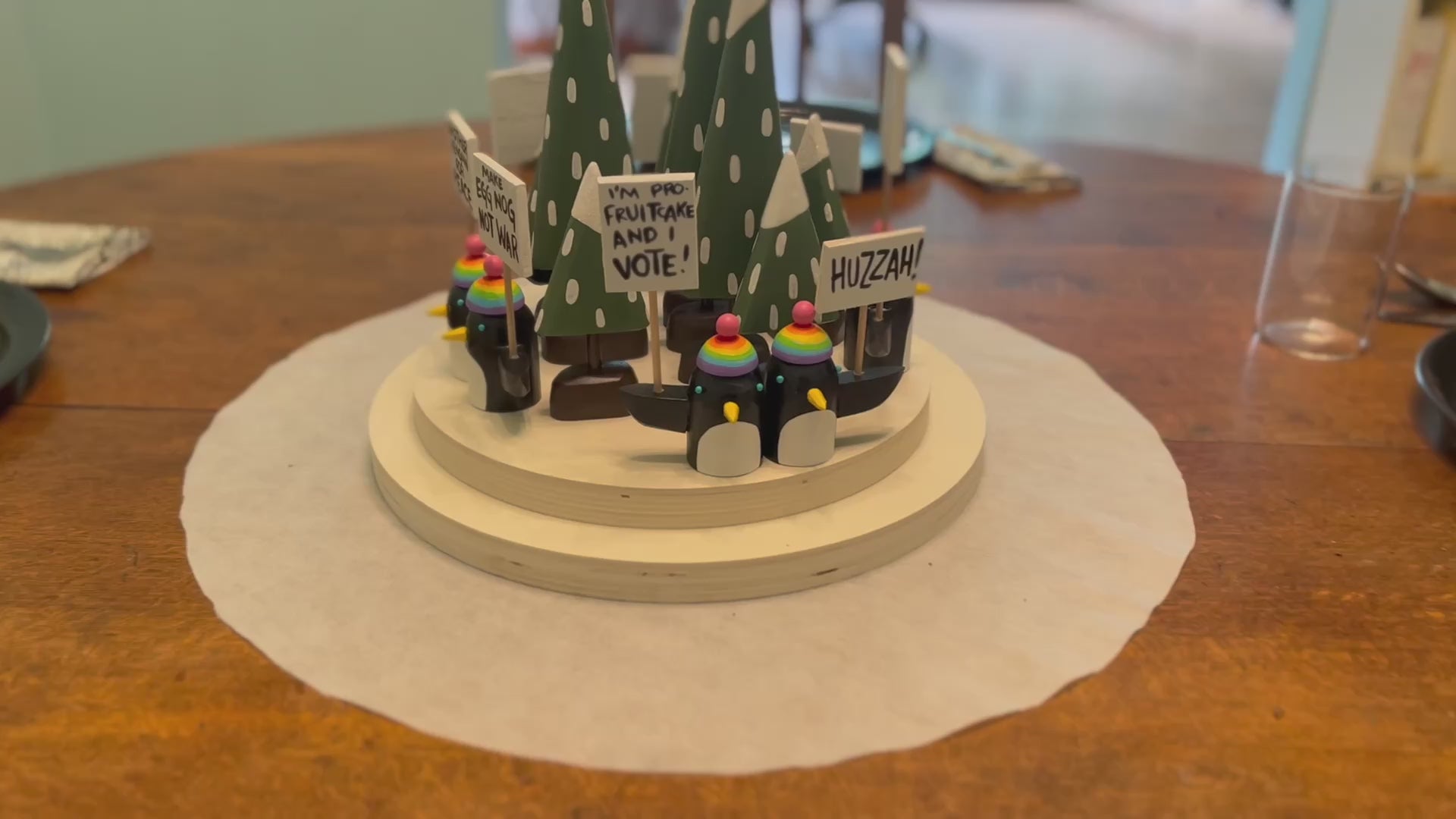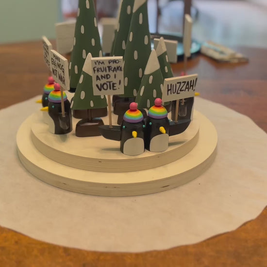 Create your own holiday centerpiece or tablescape with a miniature penguin figure made from reclaimed wood. Measures around 5" tall, 1.5" deep and 2.5 inches wide. Choose from one of eight sign options.